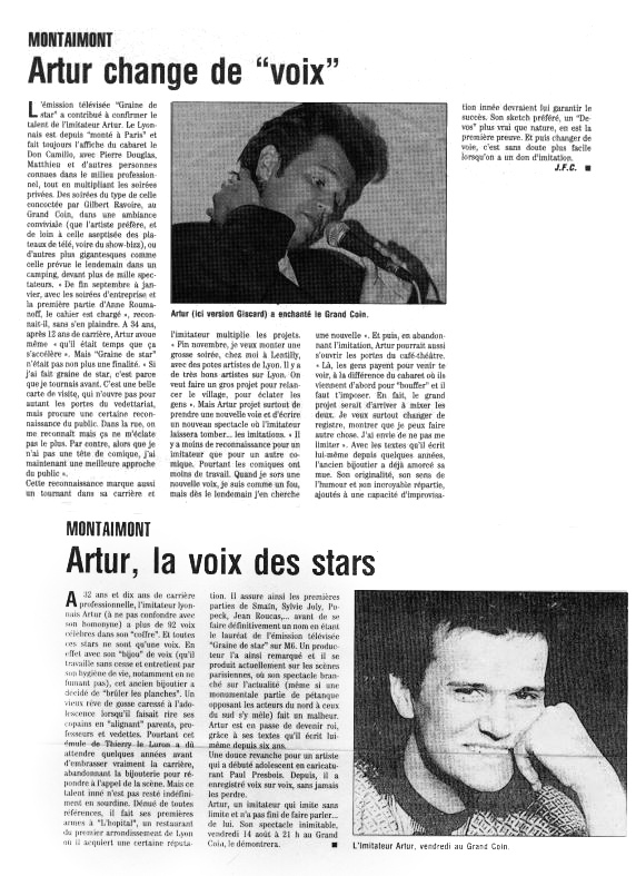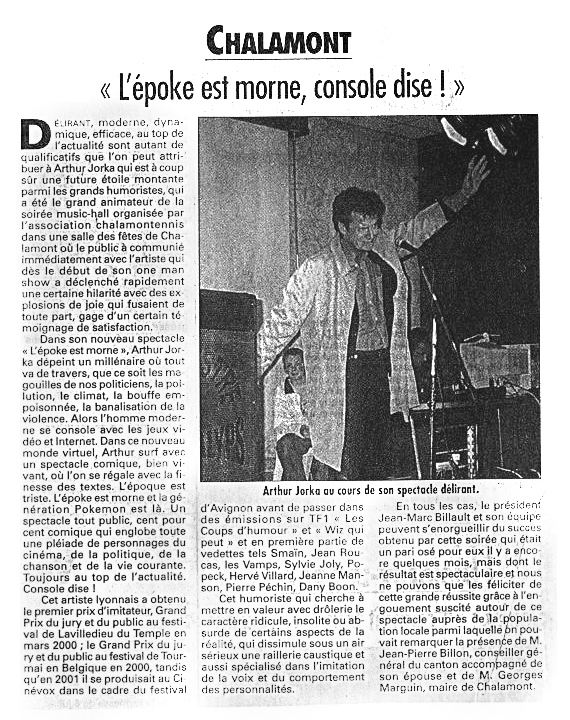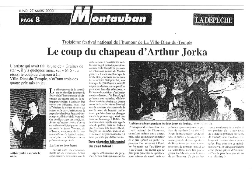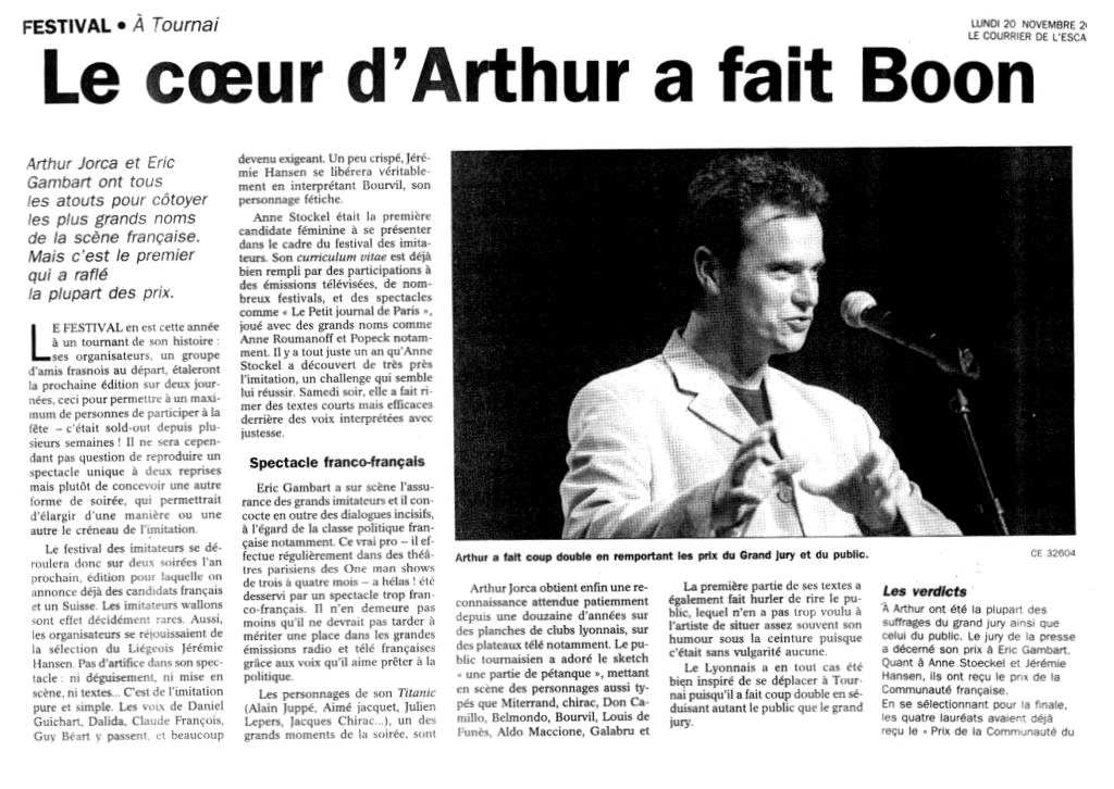 Festival de Lavilledieux du temple : Grand Prix du jury, Prix du public, 1er Prix imitateur Festival de Tournay Grand Prix du jury : Prix du public, Prix de la ville | |||||||||||||||||||||||||