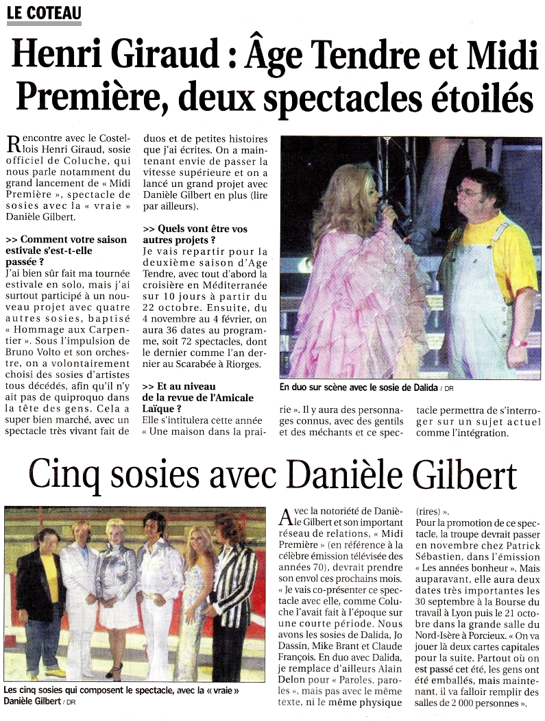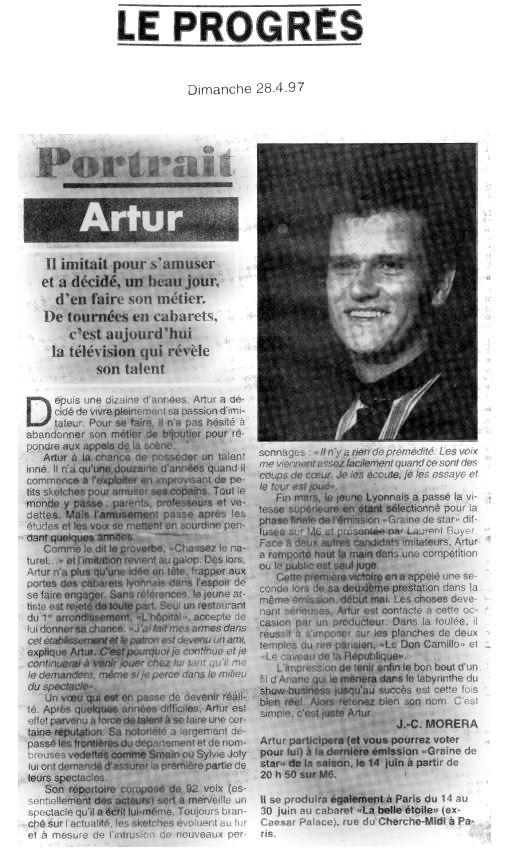 Les principaux clients : Mercedes, Crédit Mutuel, AGF, Rhone Poulenc, Mac Donald, Castorama, EDF, Renault, Auchan, Credit Agricole, De Dietrich, Peugeot, GMF, Casino, Servair, Carrefour etc... Les Cabarets & Cafés-Théâtres : PARIS : Don Camillo, Caveau de la république LYON : Au Pied Dans L'Plat, La Vie D'Artiste, L'Hôpital, l'Âne Rouge TOULOUSE : Le Citron Bleu, Le O'Toulouse SUISSE : Méli-Mélo d'RG | |